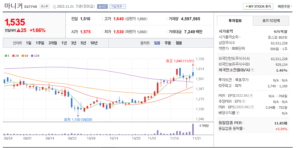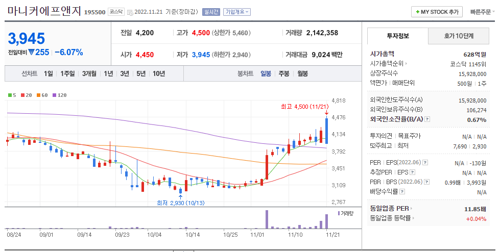 [코스닥음식료] 11월 중 상승률 상위종목은?…마니커에프앤지 업종 내 상승률 선두 - 핀포인트뉴